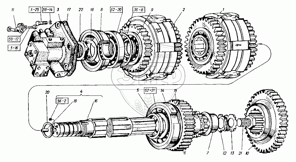 Каталог запасных частей к технике: ХТЗ Т-151К-08. Коробка передач