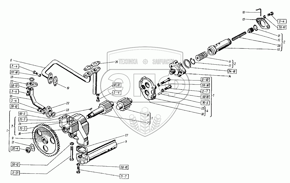 Каталог запасных частей к технике: ХТЗ Т-151К-08. Насос масляный