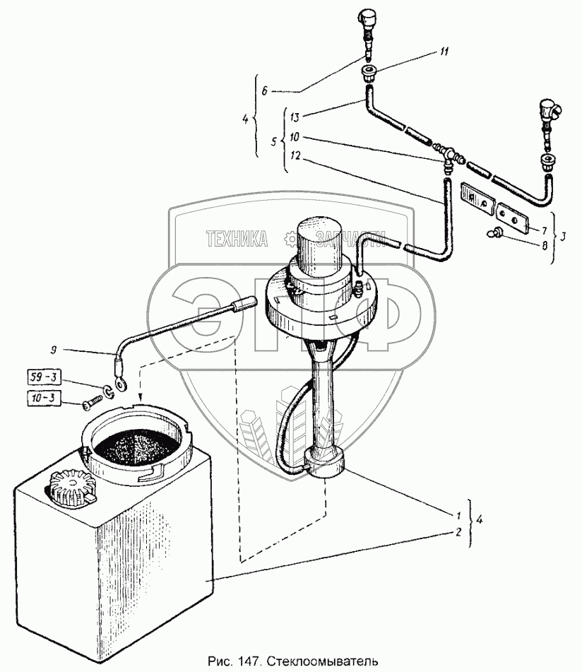 Каталог запасных частей к технике: ХТЗ Т-151К-08. Стеклоомыватель