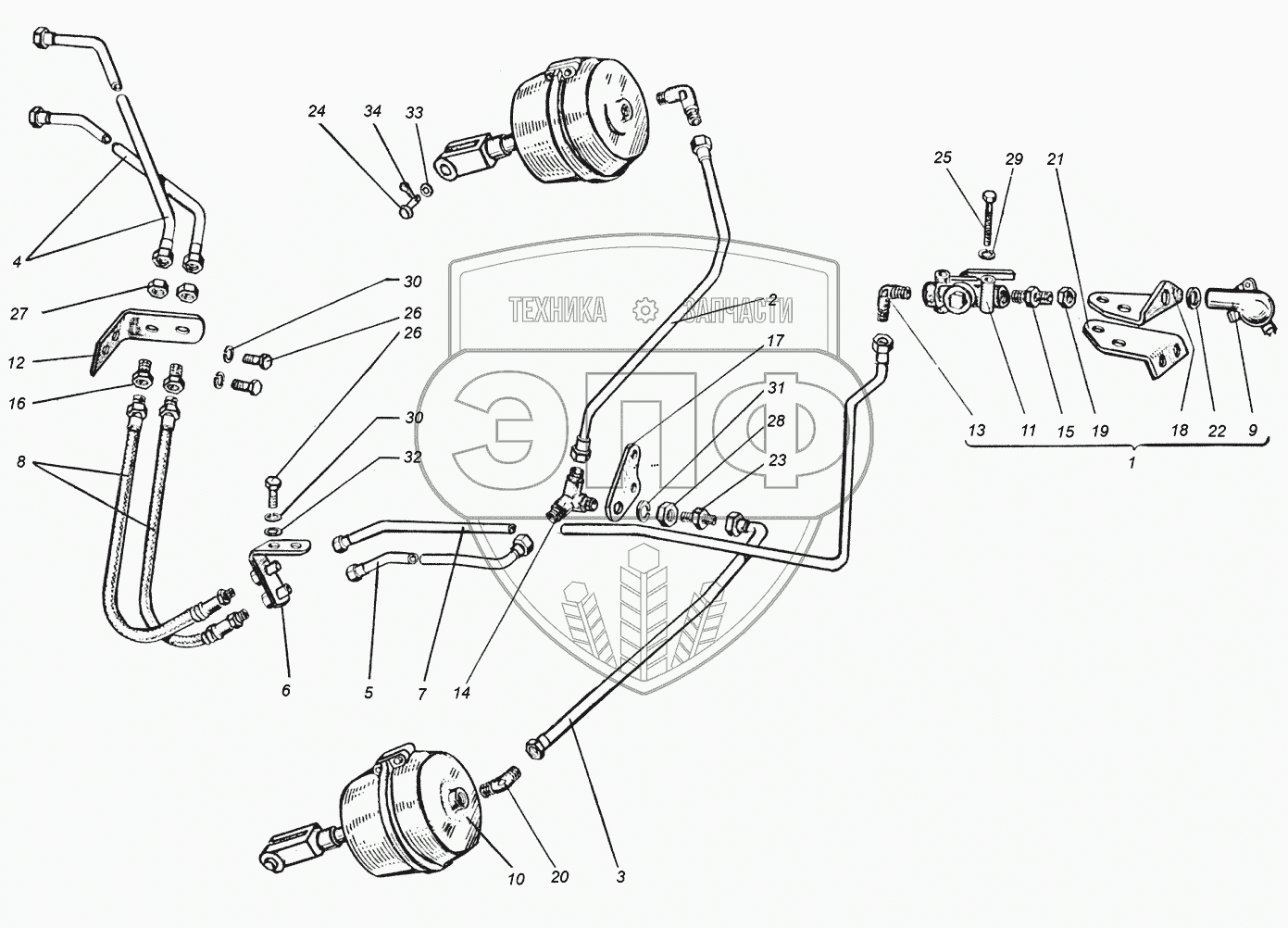 Каталог запасных частей к технике: ХТЗ Т-151К. Пневмосистема