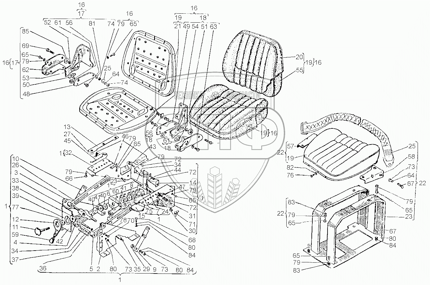 Каталог запасных частей к технике: ХТЗ Т-151К. Сиденье