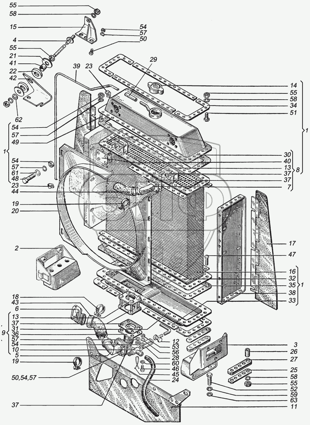 Каталог запасных частей к технике: ХТЗ Т-151К. Система охлаждения двигателя