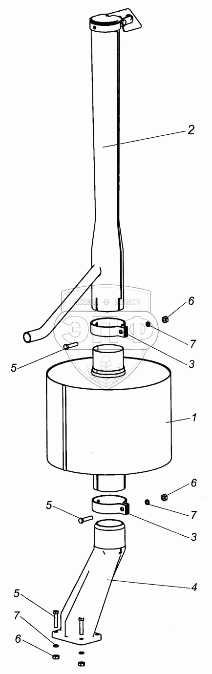 Каталог запасных частей к технике: ХТЗ Т-151К. Установка глушителя