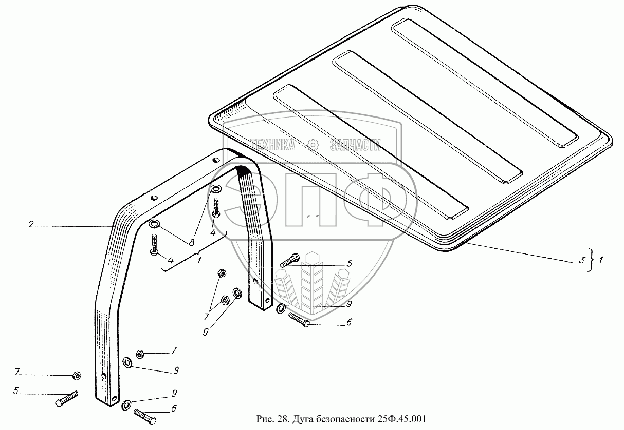 Каталог запасных частей к технике: ХТЗ Т-25Ф. Дуга безопасности 25Ф.45.001
