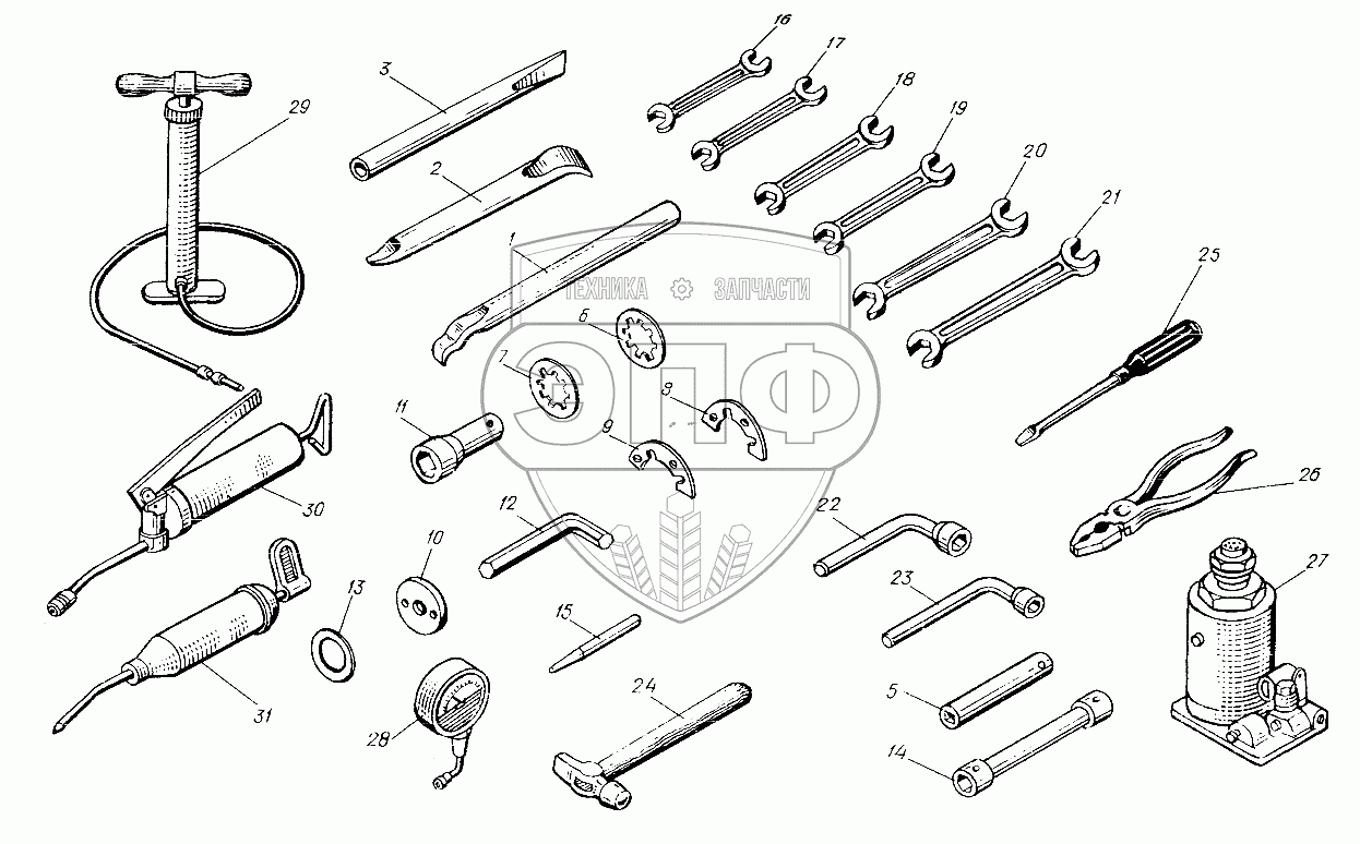 Каталог запасных частей к технике: ХТЗ Т-25Ф. Комплект ЗИП одиночный 25Ф.49.001