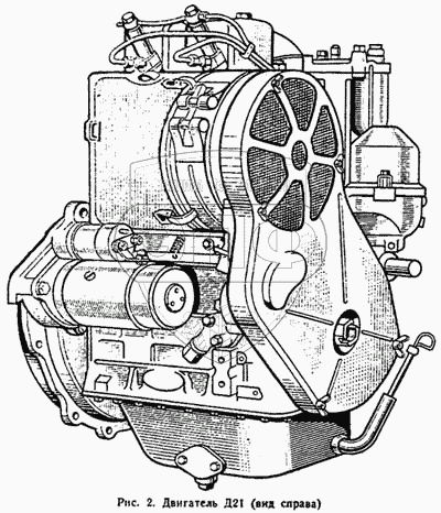 Каталог запасных частей к технике: ХЗТСШ Т-16М. Двигатель Д21 (вид справа)