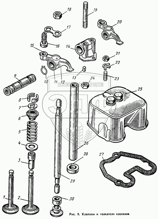 Каталог запасных частей к технике: ХЗТСШ Т-16М. Клапаны и толкатели клапанов