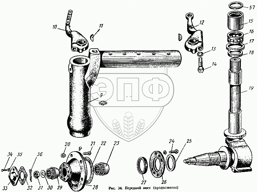 Каталог запасных частей к технике: ХЗТСШ Т-16М. Передний мост