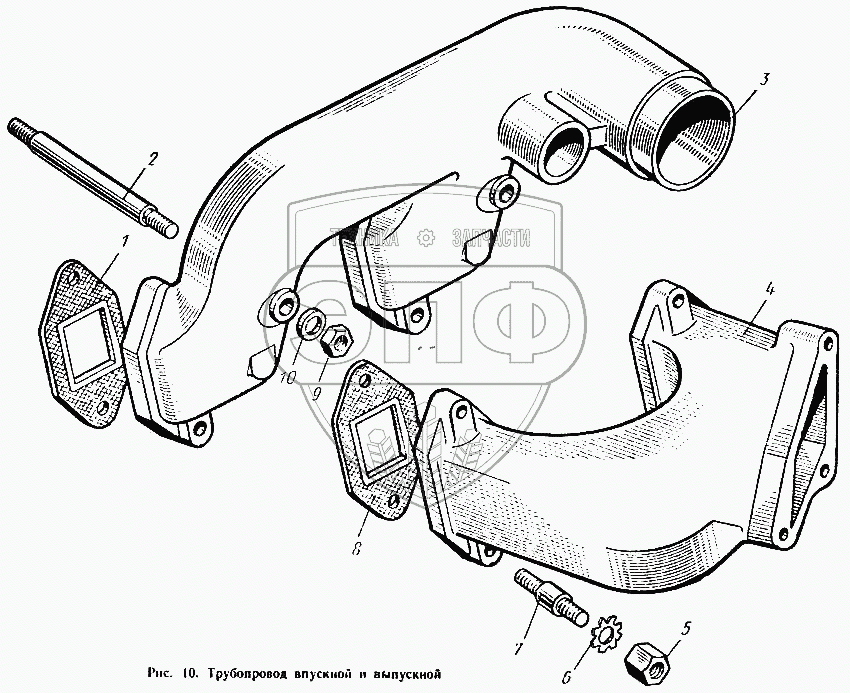 Каталог запасных частей к технике: ХЗТСШ Т-16М. Трубопровод впускной и выпускной