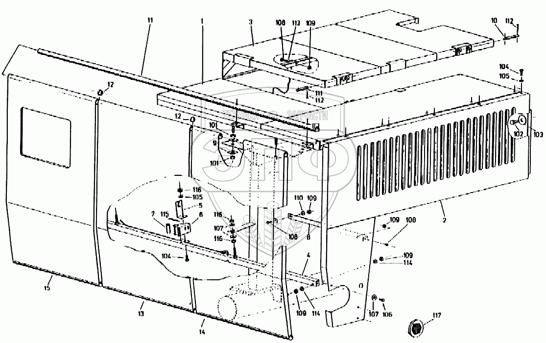 Каталог запасных частей к технике: Кировец-Ландтехник Е-281 "MARAL-125". Обшивка задняя