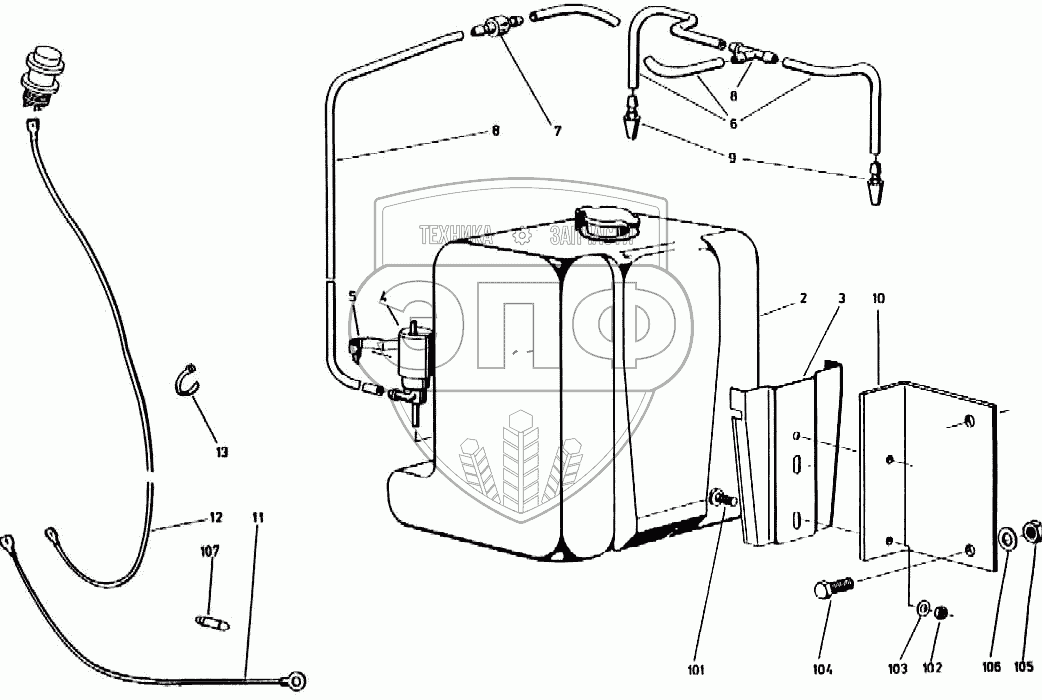 Каталог запасных частей к технике: Кировец-Ландтехник Е-281 "MARAL-125". Стеклоомыватель