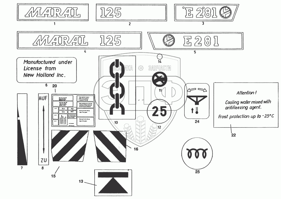 Каталог запасных частей к технике: Кировец-Ландтехник Е-281 "MARAL-125". Таблички и наклейки