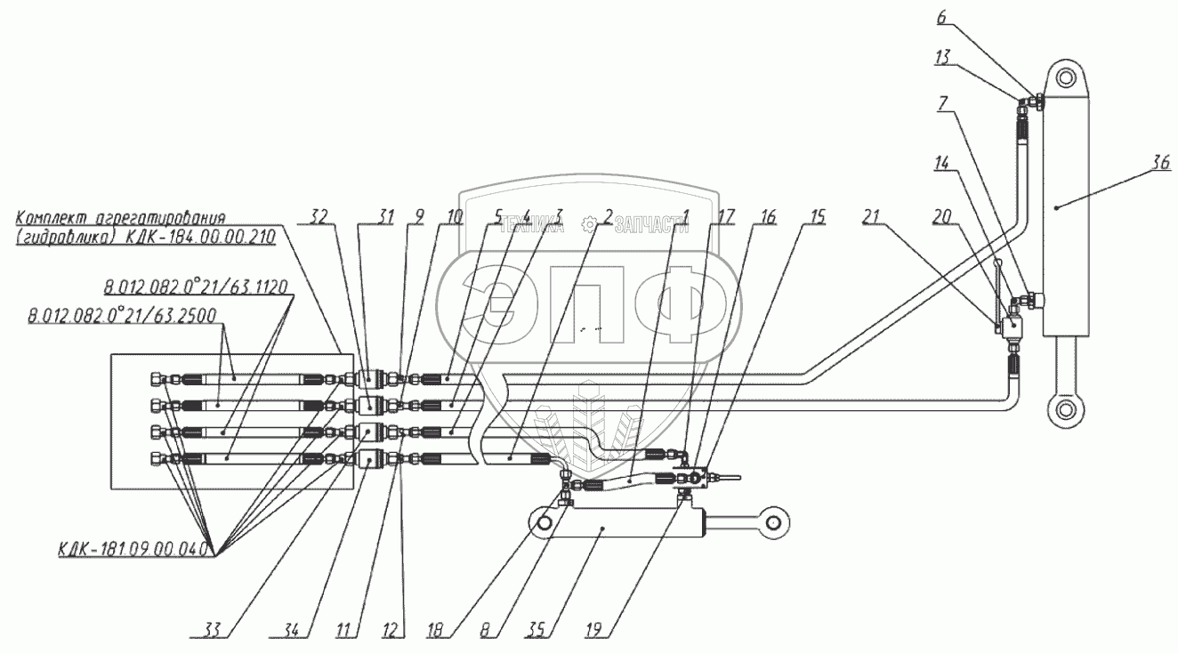 Каталог запасных частей к технике: Клевер КДК-184 "Cheege". Схема гидравлическая
