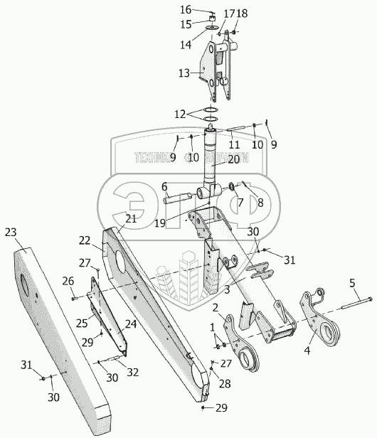 Каталог запасных частей к технике: Клевер КРК-2.4 "SapSun". Установка бруса малого
