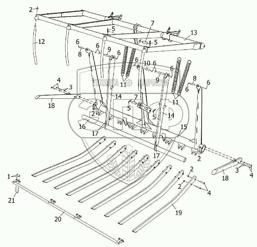 Каталог запасных частей к технике: Клевер ПФУ-081 (Fenix 800). Грабельная решётка