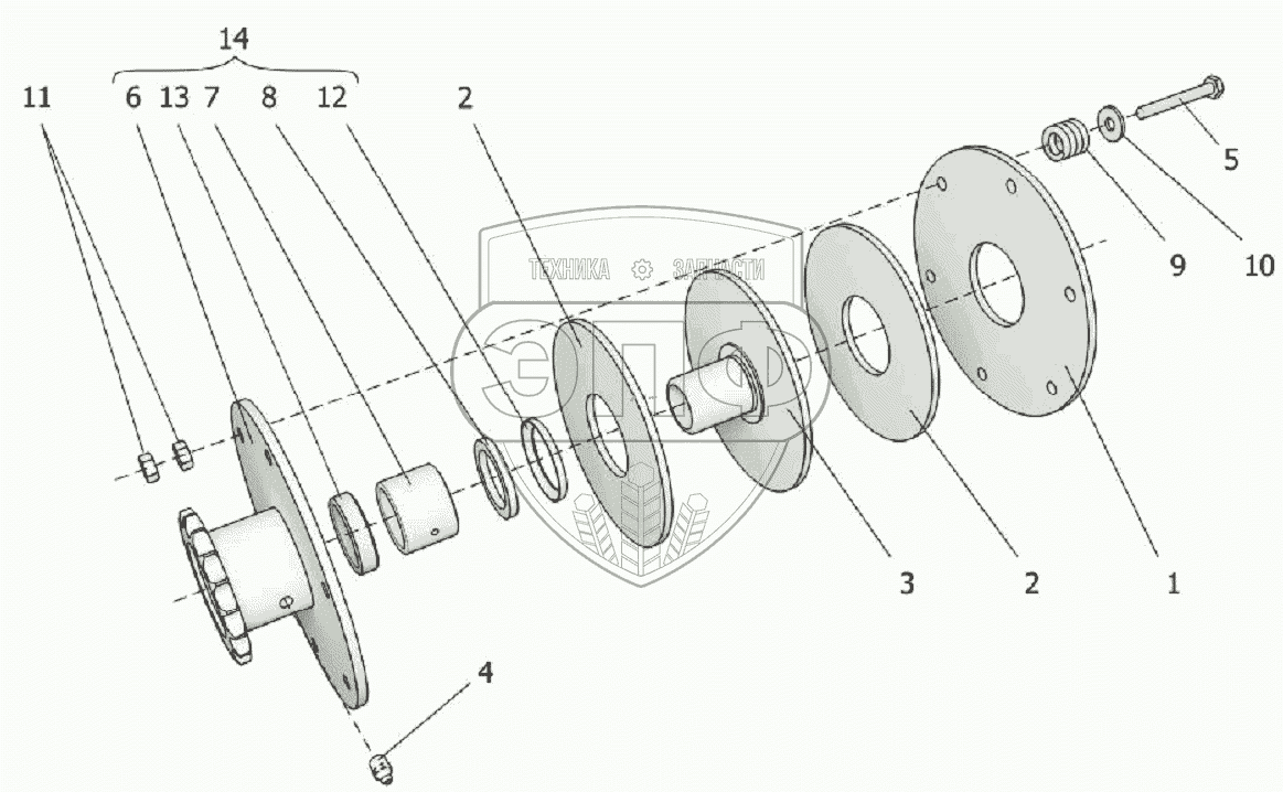 Каталог запасных частей к технике: Клевер ППК-121. Предохранительная фрикционная муфта привода шнека