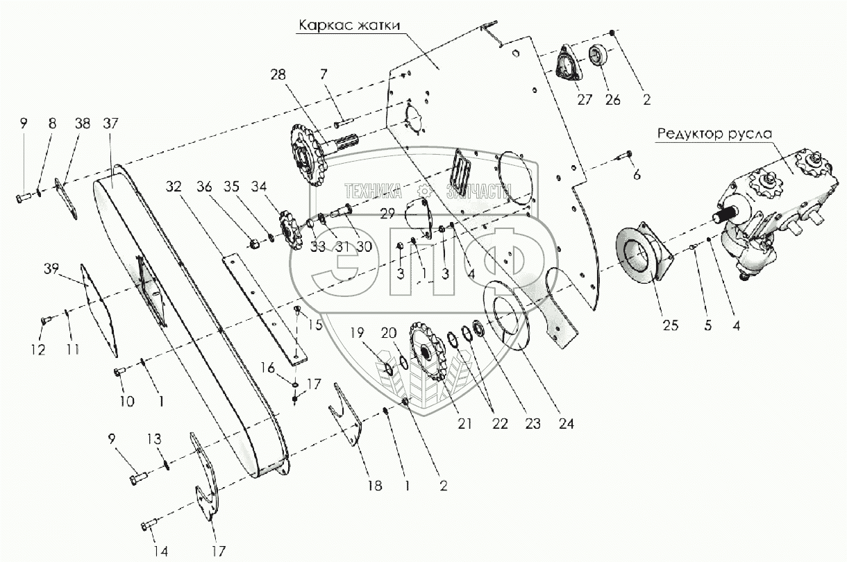 Каталог запасных частей к технике: Клевер ППК-82 "Argus". Привод жатки (вид справа)