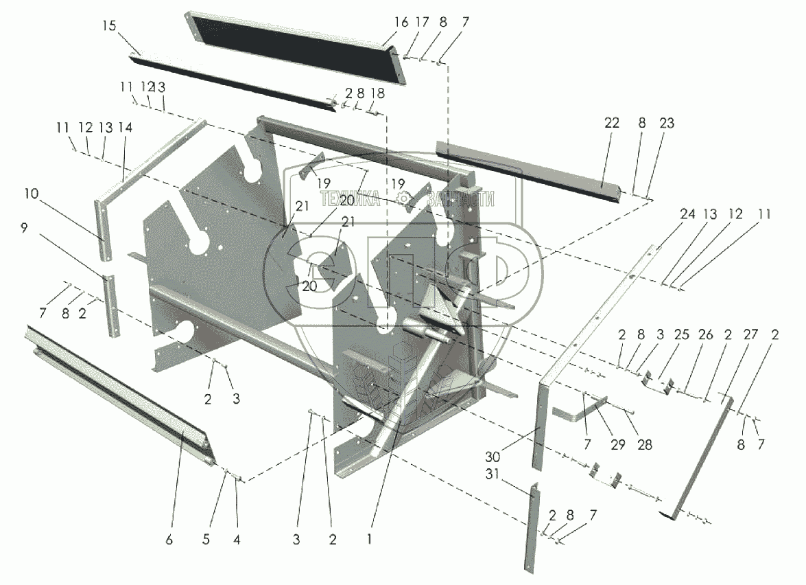 Каталог запасных частей к технике: Клевер ППР-120 "Pelikan". Рама верхней камеры