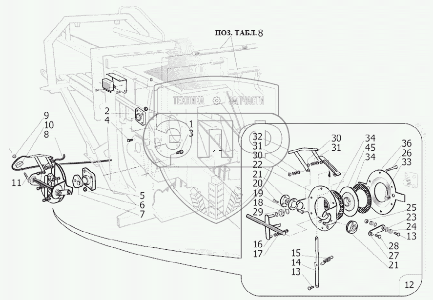Каталог запасных частей к технике: Клевер ППТ-1270 "Tukan Max". Таблица 12