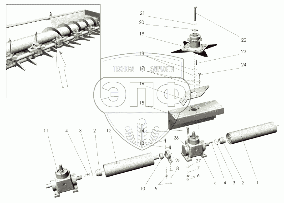 Каталог запасных частей к технике: Клевер ПСП-10МГ "Falcon". Корпус жатки (привод)