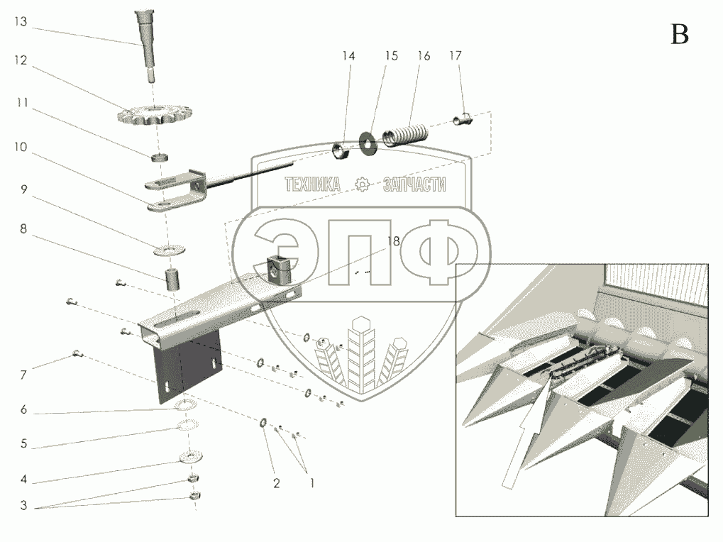 Каталог запасных частей к технике: Клевер ПСП-10МГ "Falcon". Лифтер правый (натяжная звездочка)