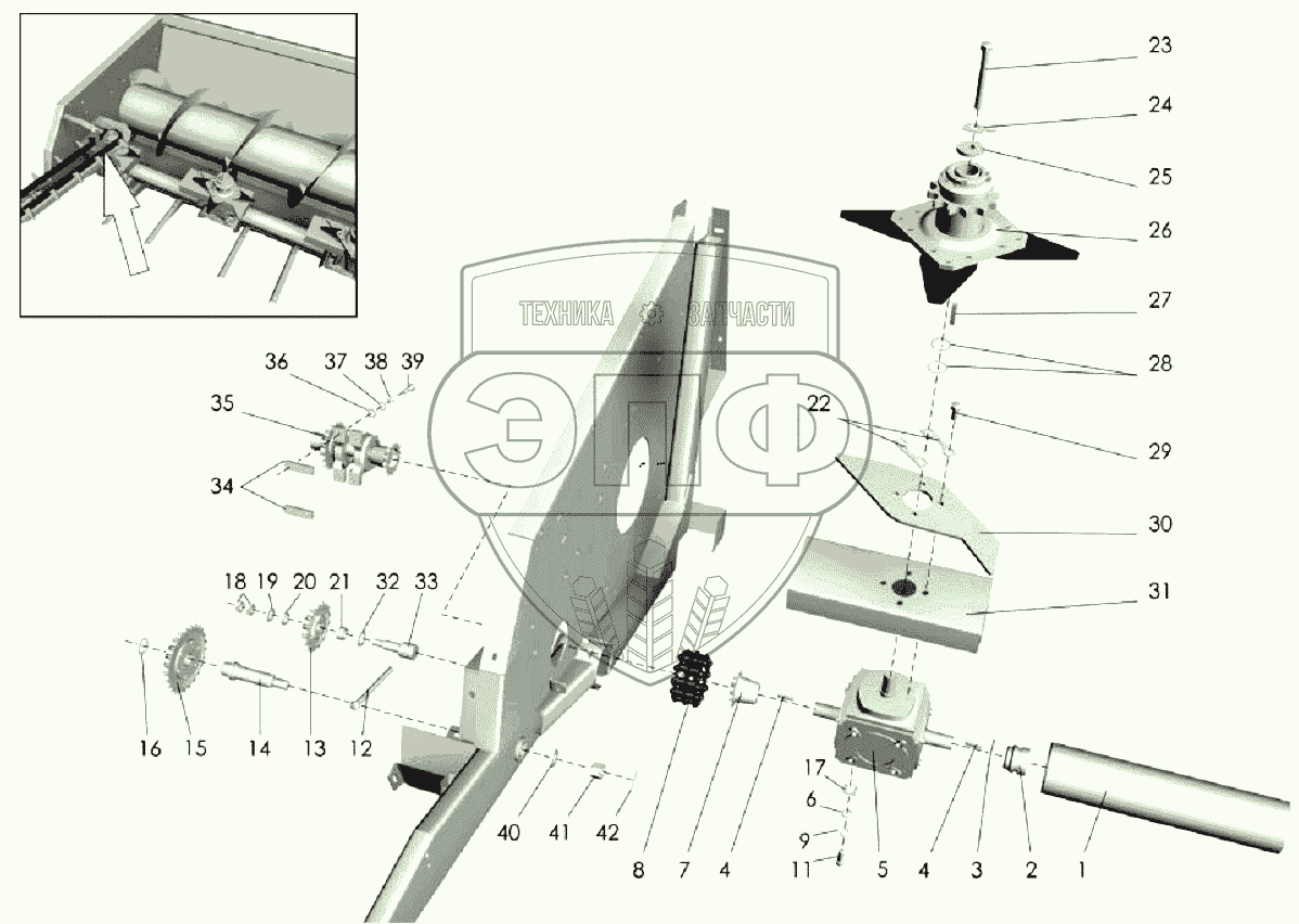 Каталог запасных частей к технике: Клевер ПСП-10МУ "Falcon". Корпус жатки (привод)