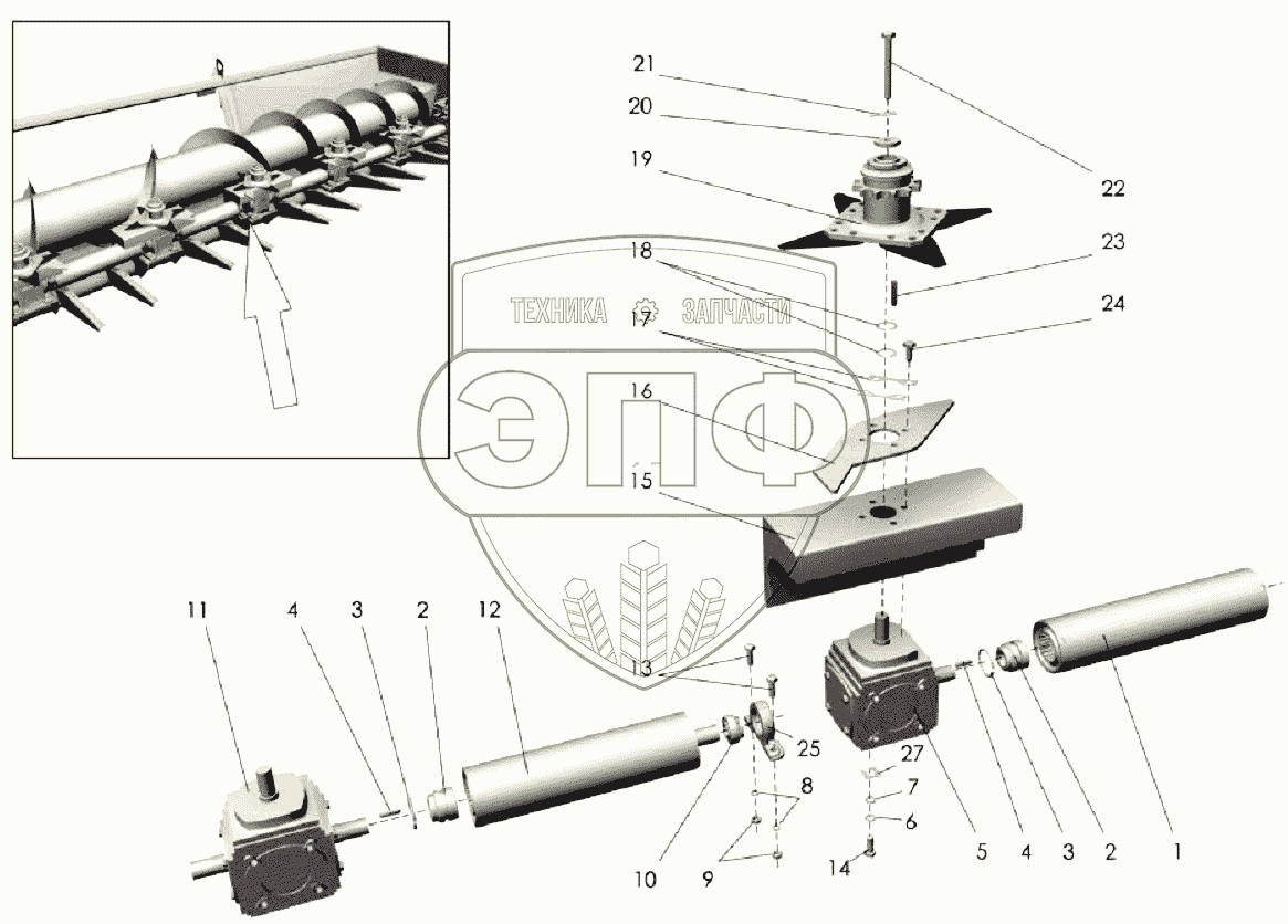 Каталог запасных частей к технике: Клевер ПСП-10МУ "Falcon". Корпус жатки (привод)