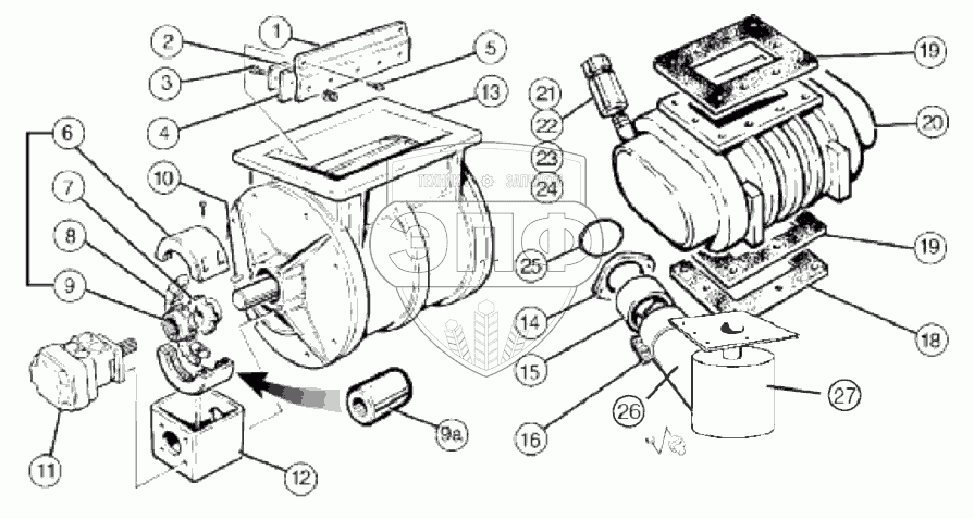 Каталог запасных частей к технике: Клевер ПЗВ-70. Сборка шлюзовой камеры и нагнетателя