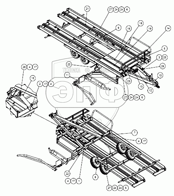 Каталог запасных частей к технике: Клевер ТПР-10. Чертеж сборки тележки – 815604