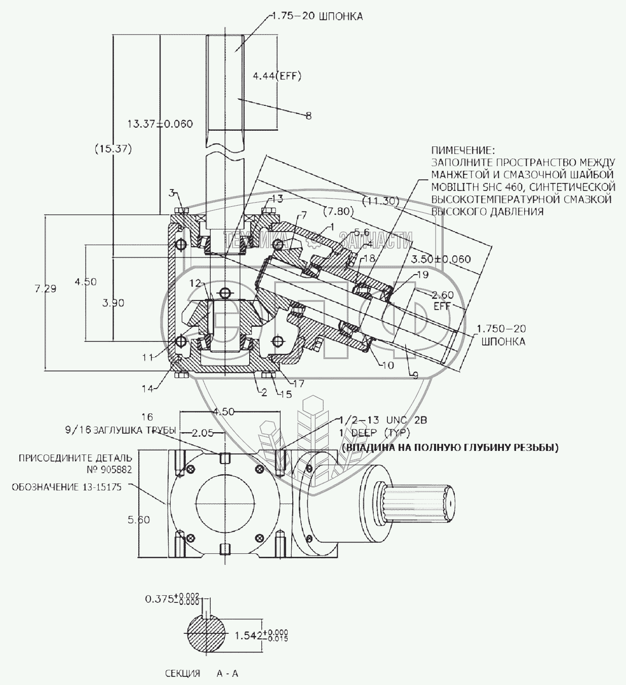 Каталог запасных частей к технике: Клевер ТШВ-400-23. Схема редуктора приемного бокса