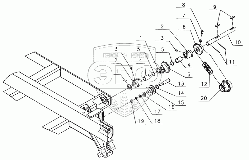 Каталог запасных частей к технике: Красная Звезда СТС-2 (6). Промежуточный вал механизма привода