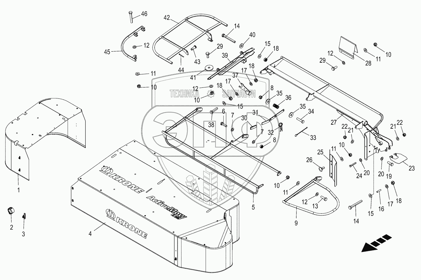 Каталог запасных частей к технике: KRONE ActiveMow R200. Fold-away guard
