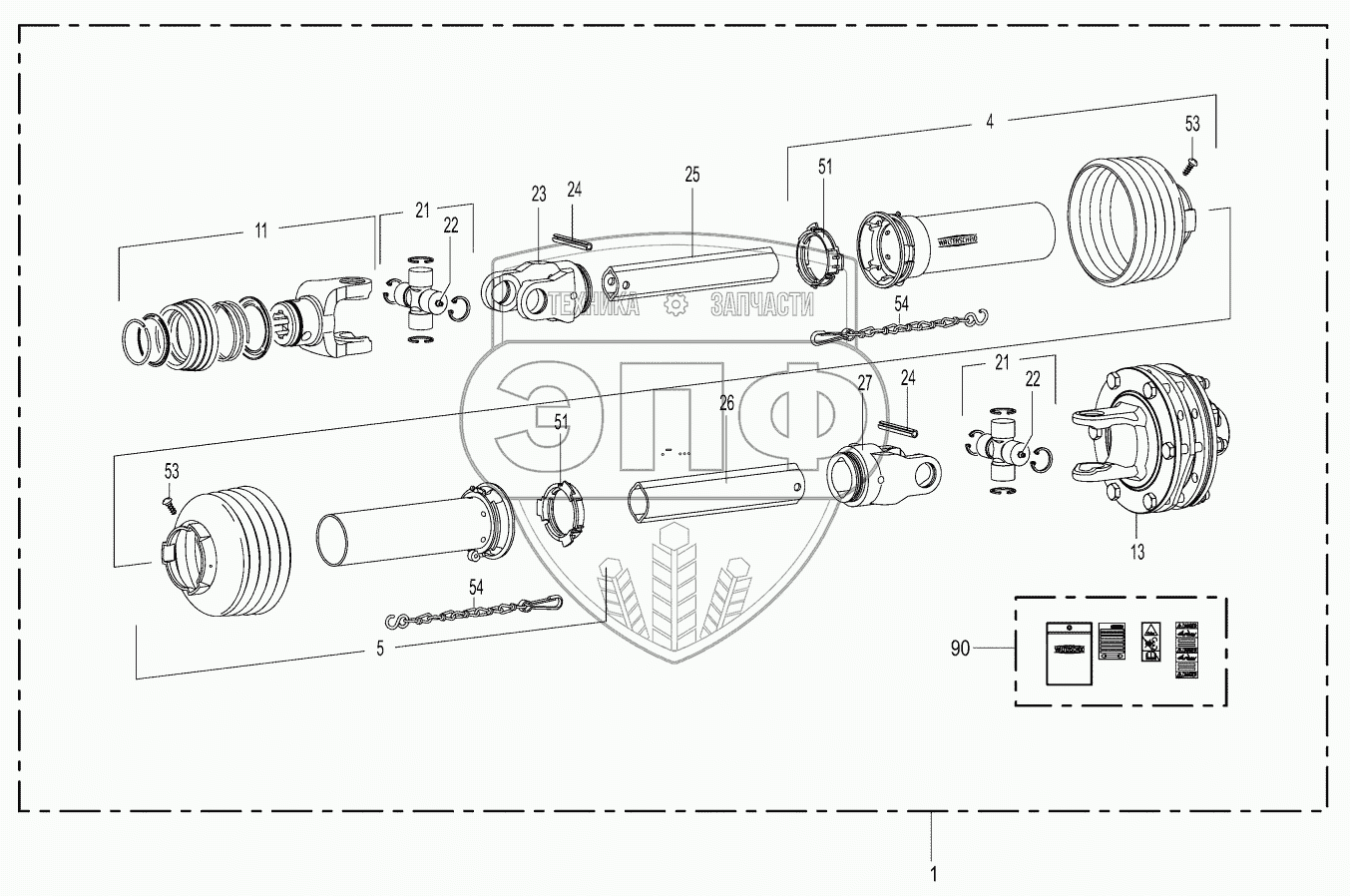 Каталог запасных частей к технике: KRONE ActiveMow R200. Pto drive shaft 962401 - 971000