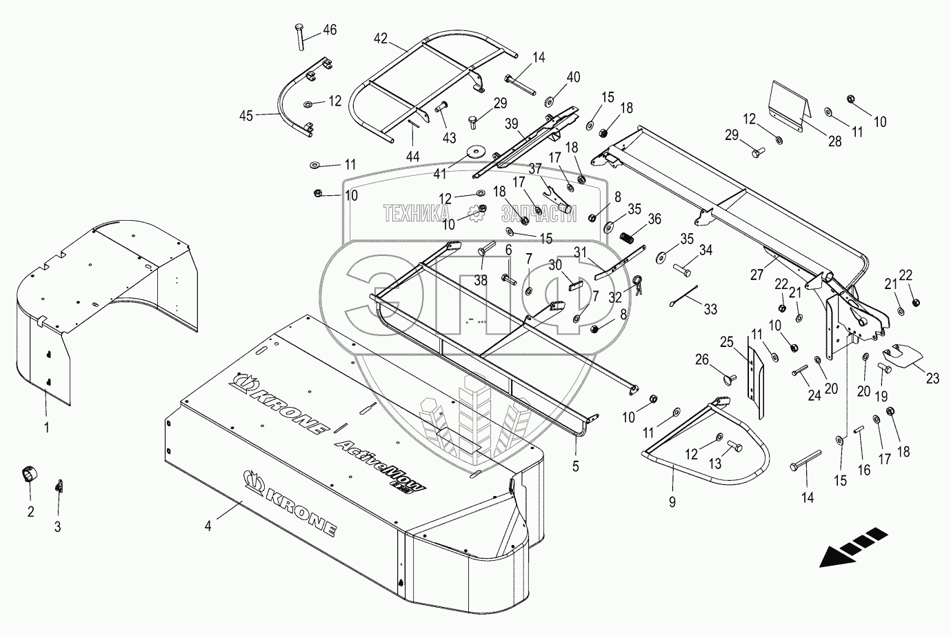 Каталог запасных частей к технике: KRONE ActiveMow R240. Schutz Fold-away