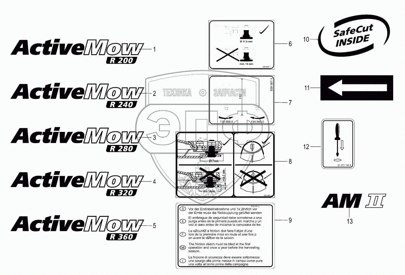 Каталог запасных частей к технике: KRONE ActiveMow R280. General information labels