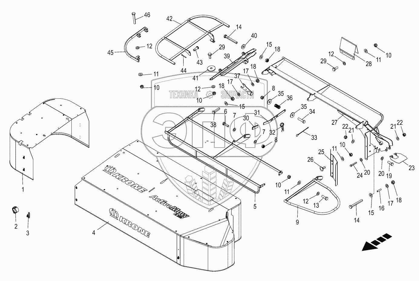 Каталог запасных частей к технике: KRONE ActiveMow R280. Fold-away guard