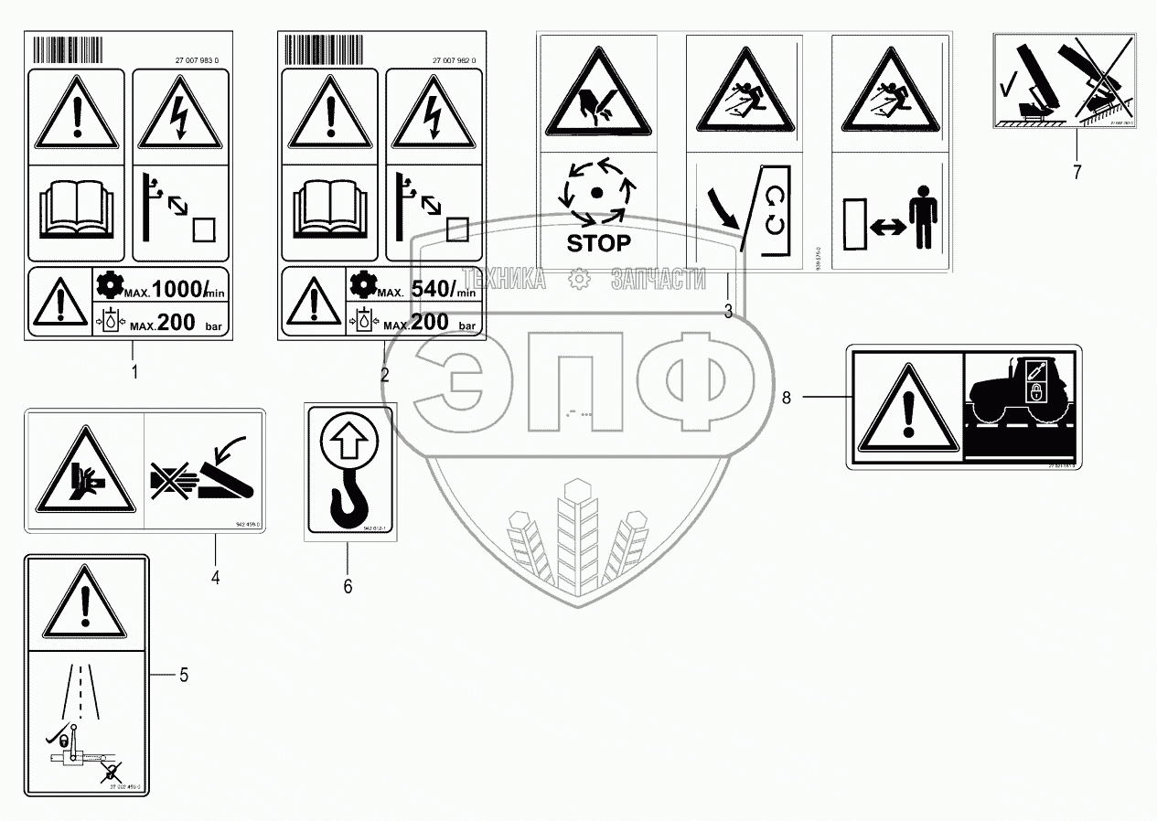 | 8 | 270215910 | Label lock tractor hydraulics yellow | Нет на складе |