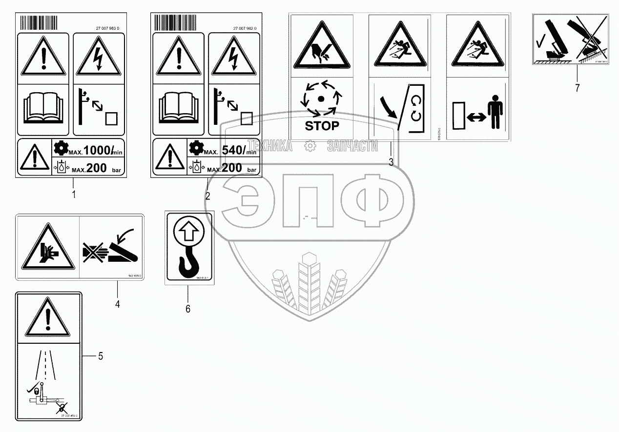 Каталог запасных частей к технике: KRONE ActiveMow R360. Warning signs