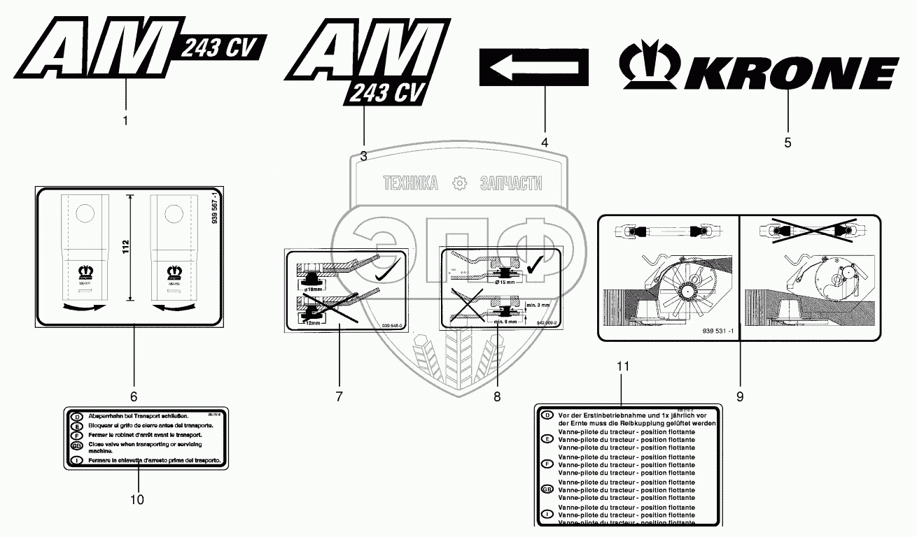Каталог запасных частей к технике: KRONE AM 203CV, AM243CV, AM283CV. General information labels