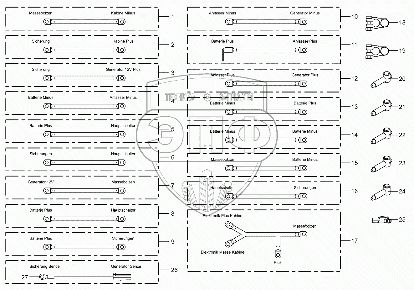 | 15 | 200830040 | Cable battery-ground bolt | Нет на складе | |