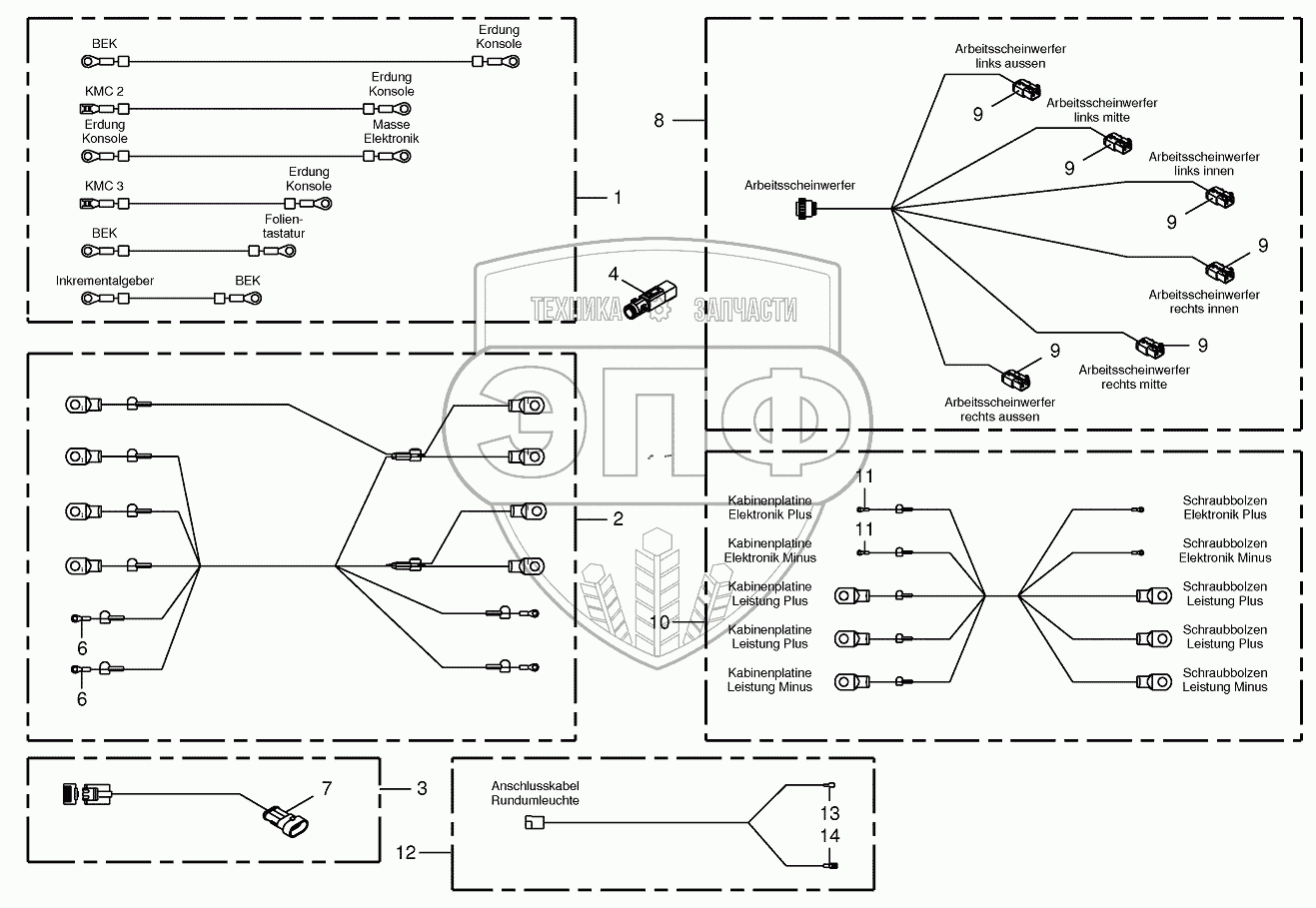 Каталог запасных частей к технике: KRONE BIG-M-420. Wiring harness-control box/cab