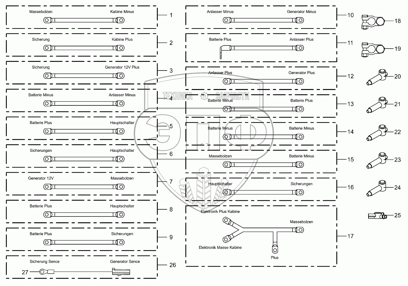 | 15 | 200830040 | Cable battery-ground bolt | Нет на складе | |