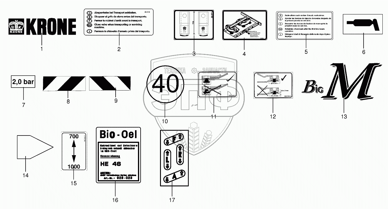 Каталог запасных частей к технике: KRONE BIG-M-I. General information labels