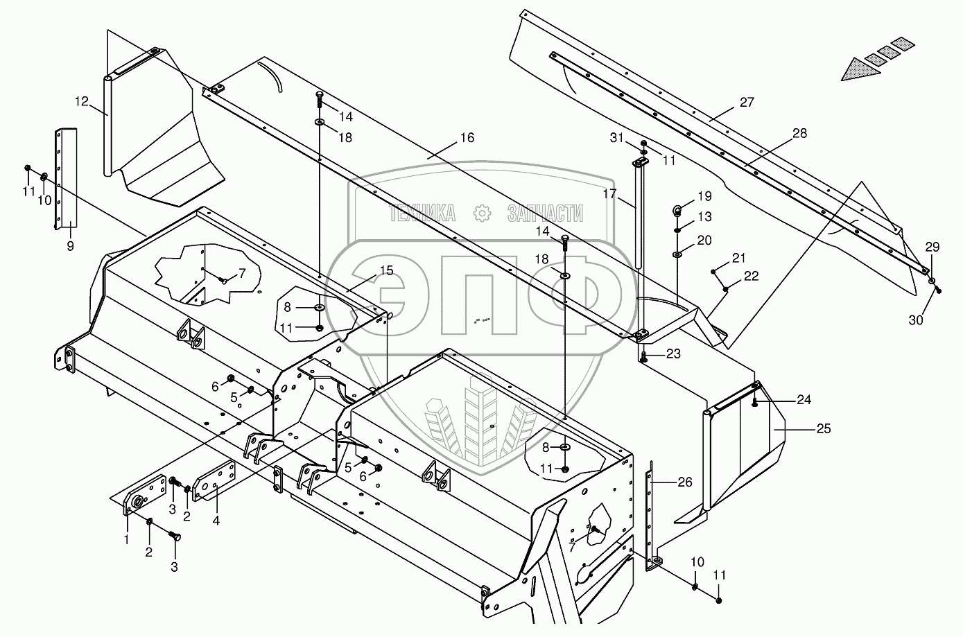 Каталог запасных частей к технике: KRONE BIG-M-I. Tine conditioner housing, assembled