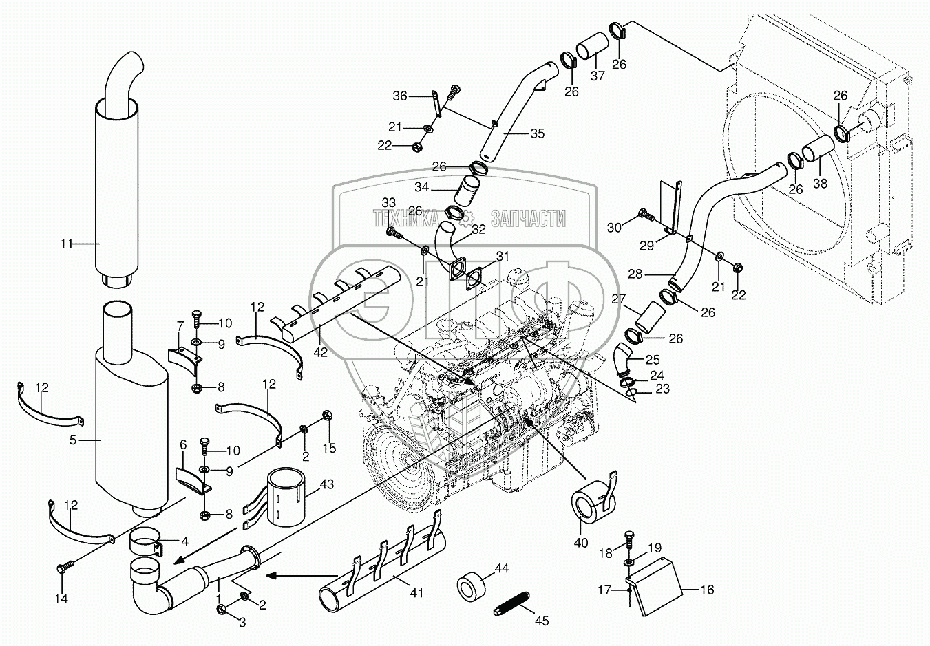 Каталог запасных частей к технике: KRONE BIG-M-II. Silencer /Charge air tubes