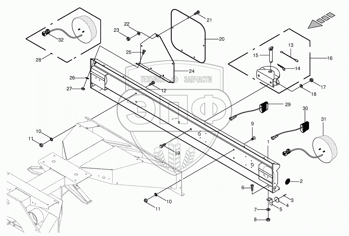 Каталог запасных частей к технике: KRONE BIG-M-II. Lighting bracket/trailer hitch