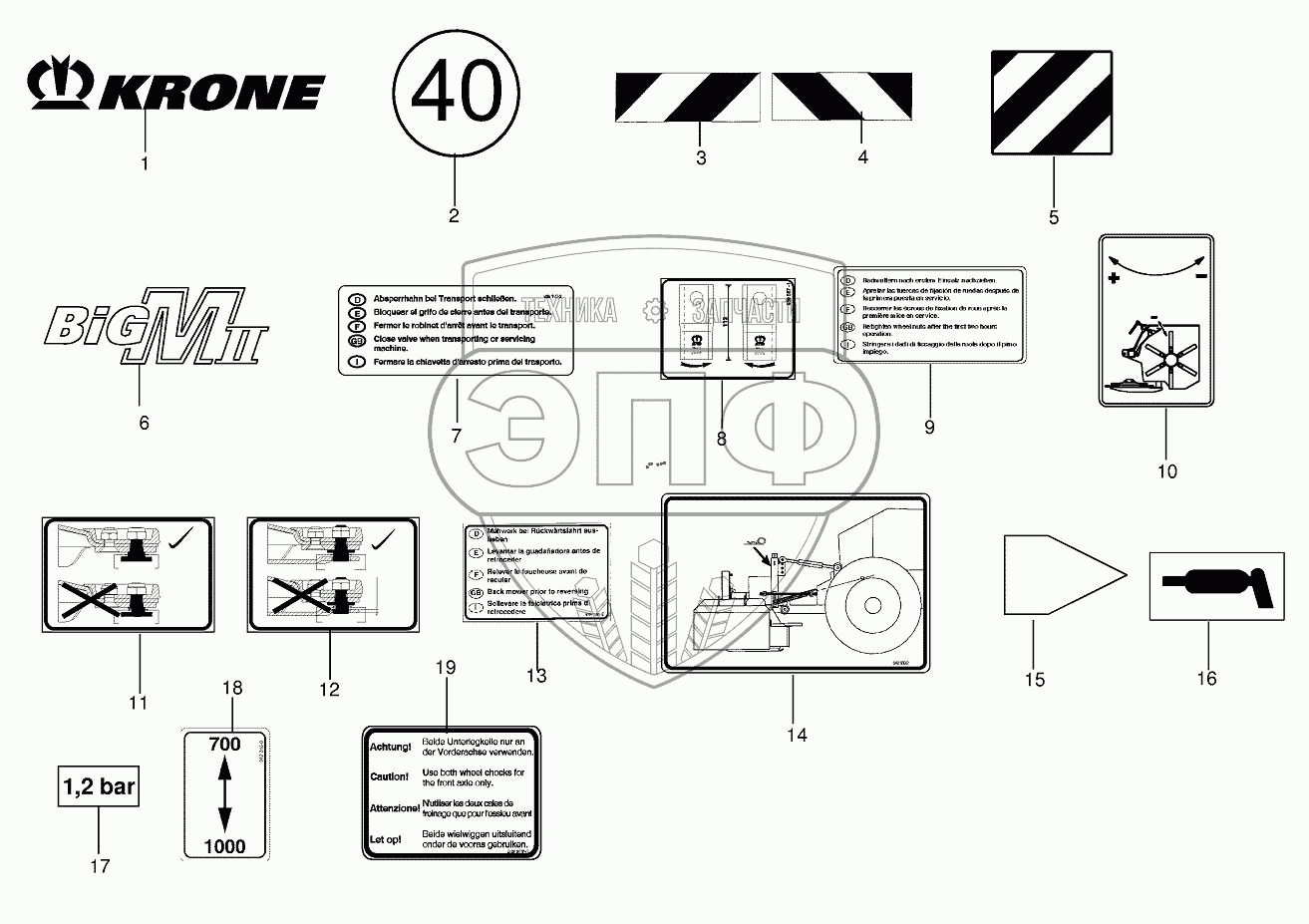 Каталог запасных частей к технике: KRONE BIG-M-II. General information labels