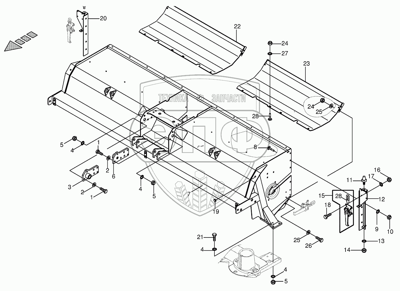 Каталог запасных частей к технике: KRONE BIG-M-II. Tine conditioner housing -lateral