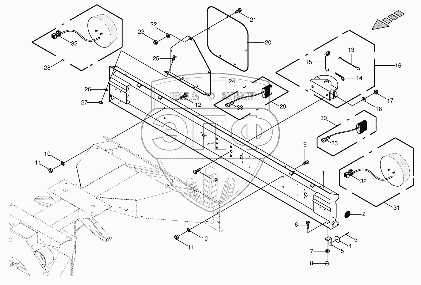 Каталог запасных частей к технике: KRONE BIG-M-II. Lighting bracket / trailer hitch