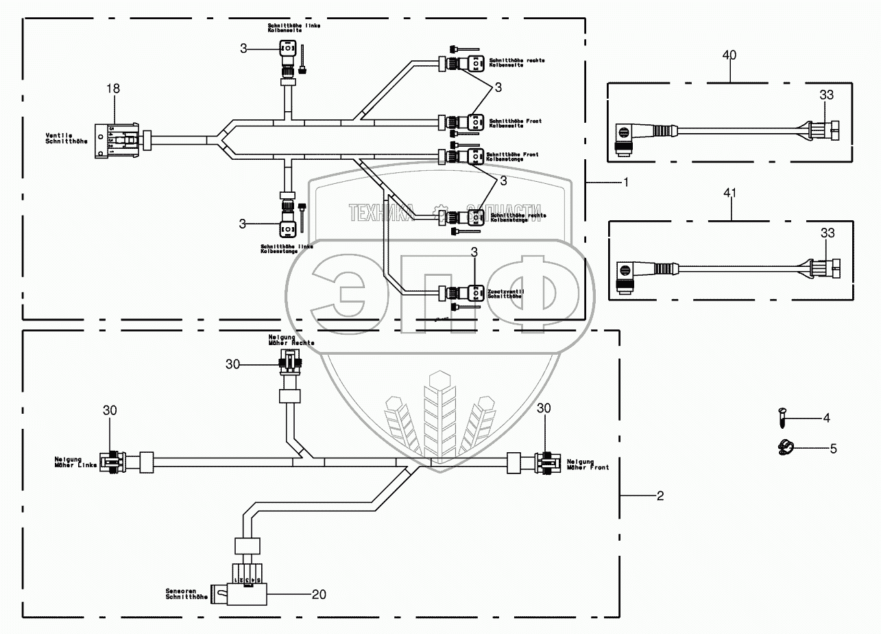 Каталог запасных частей к технике: KRONE BIG-M-II. Wiring Harness - cutting height